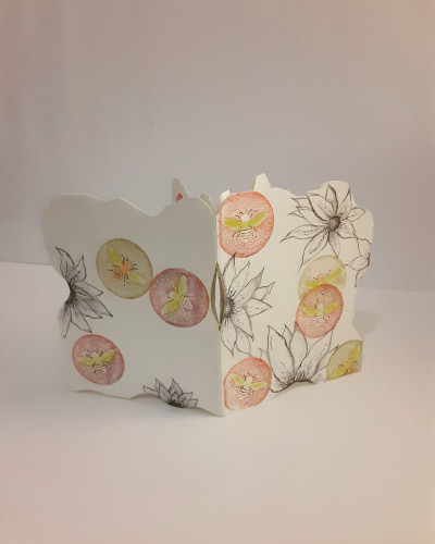 This Book Represents a symbol of nature, flower, leaf, and materials to support the imagery, it Emerges in the warm season, a cyclical time of new growth and life. The rhythm of color, texture, form, that is reflected and memories of seeing this delicate petal flower that moves with the wind; it also has a spiritual meaning to protect against ill wishes and belongs to the Buttercup family.